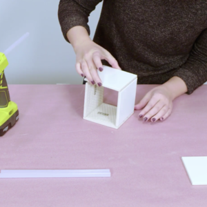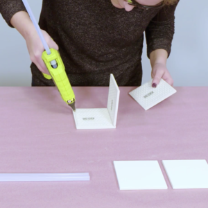 Kun neljä laattaa on kiinnitetty toisiinsa muodostamaan avoin laatikko, lisää kuumaliimaa toisen puolen kaikkiin reunoihin ja lisää viides laatta kuumaliiman päälle pohjaksi.